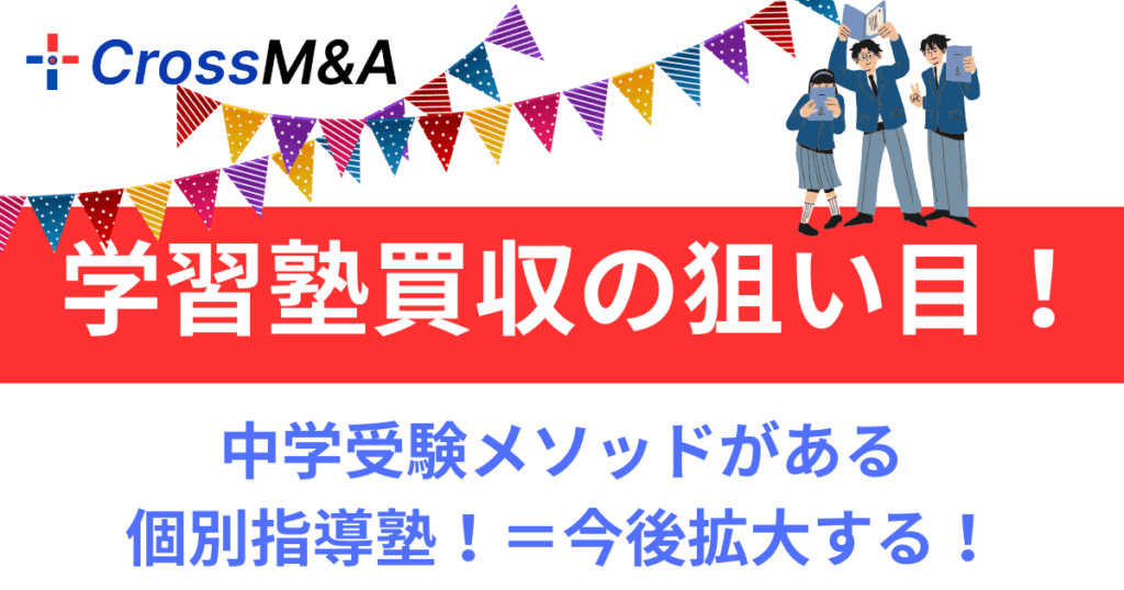 従いまして、中学受験個別指導が出来るメソッドがある個別指導塾の買収がもっともパフォーマンスが高くなる可能性があるのです。