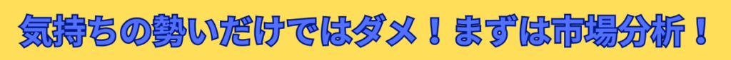 ↑ 何はともあれ、このリサーチをしなければお話になりません。こうすればきっとうまくいく!という想いを描いたならば、市場分析が必須です。